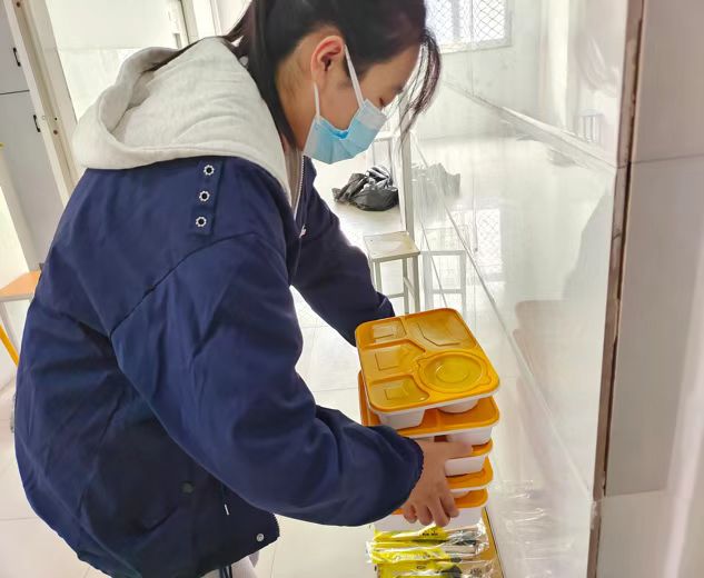 徐怡媺,2020级医学检验技术,预备党员。她积极加入到学校每日饭菜供应工作当中,每日三餐为同学们搬饭。虽然时间不固定,但她们都能随叫随到及时到岗,和其他干部互相配合,饭菜一箱又一箱,楼梯一层又一层,她们没有一句怨言,更没有一个人说放弃。她说“希望我们一同努力,早日打赢这场疫情攻坚战。”