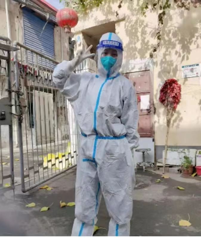 蒋与雪,2020级医学检验技术,宣传委员、曾任系学生会新媒体工作部部长、青年突击队中队辅导。近期疫情严重,她积极参与到志愿者行列中,她说“为社会做出自己小小的贡献,用一份热发一份光,第一次穿上防护服成为‘大白’是2022年最值得纪念和骄傲的时刻了。在这次活动中,我体会到了医护人员和基层工作者的辛苦和不易,只愿大家都可以彼此尊重彼此谅解。愿我们也会迎来属于我们的顺利!”
