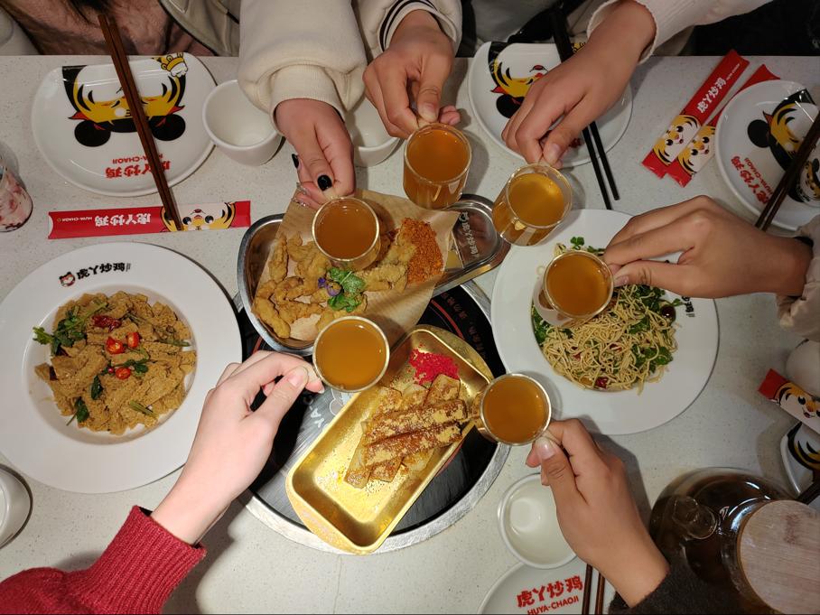 开学后,我见到我亲爱的舍友们,本寝室长携全宿舍成员于二月二十日在正弘城为上学期由于疫情未能到校的新疆同学接风洗尘,这是我们第一次全宿舍一起聚餐,我们带领新疆同学坐郑州地铁,逛郑州商场,吃郑州美食,体会郑州人土风情。