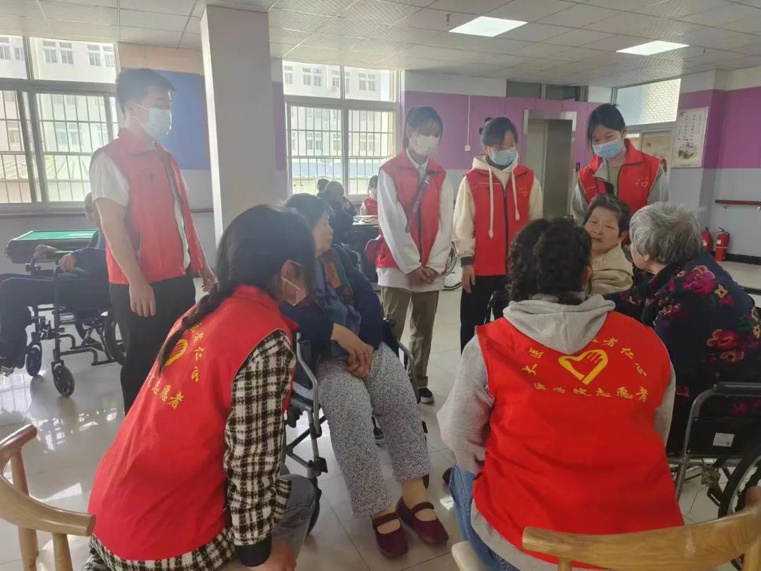 首先医学院团委主席郝伟带着一部分志愿者先扫地、拖地、擦擦扶手,把护理院打扫干净,另一部分志愿者由外联部部长何宇森带队进屋陪爷爷奶奶聊天,关切地询问他们的生活状况,老人们耳朵不好使,志愿者耐心地和他们慢慢地说;老人们腿脚不灵便,志愿者们推着轮椅与老人一起散步,聊天说地,谈论古今,陪老人下象棋。其次护理院的院长带着老人跳舞,志愿者们围成一个大圈也积极加入他们。然后志愿者也安排了孙迪、张紫薇 、李梦瑶、范琴怡、李依璐等人跳舞唱歌,在这欢快的歌声中结束我们今天的活动。最后志愿者们和护理院的院长拍了一张大合照,纪念这次丰富的志愿活动。