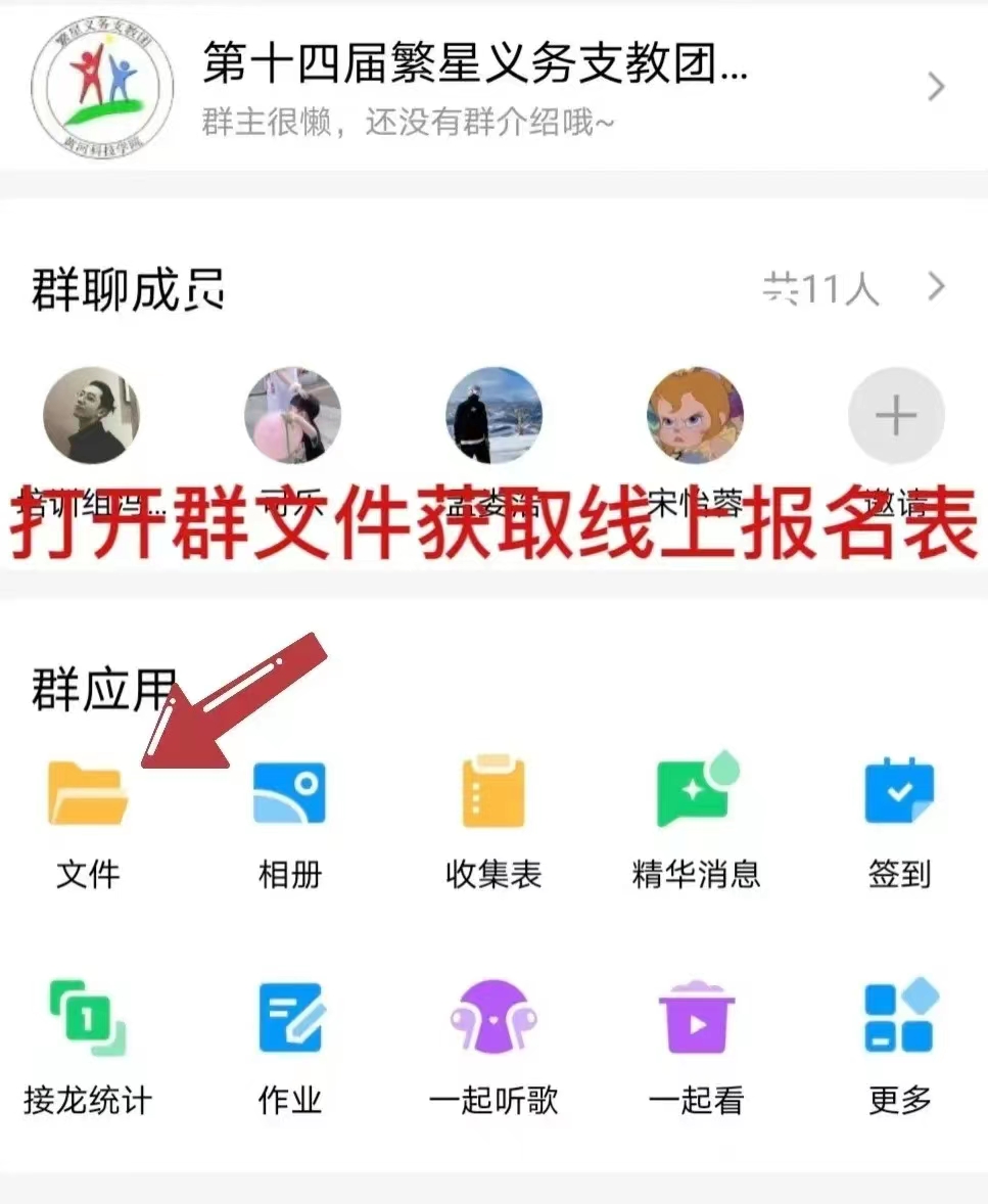 三。打开群聊主页,点击群文件获取繁星线上报名表