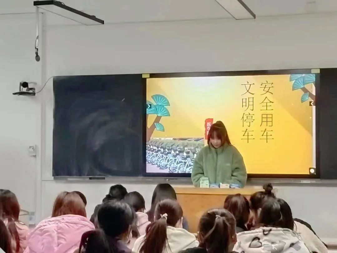通过宣讲积极倡导与教育学生遵守公共秩序,保障交通安全,切实预防和减少校园道路交通事故的发生。学生会通过线下组织各部门部员开展分享个人对停车行为的看法与建议。首先是学生会成员千吉利针对不文明停车而造成的后果进行分析,然后提出几点建议来尽量减少不文明停车现象,接着另一位学生会成员许贤针对安全停车进行建议。