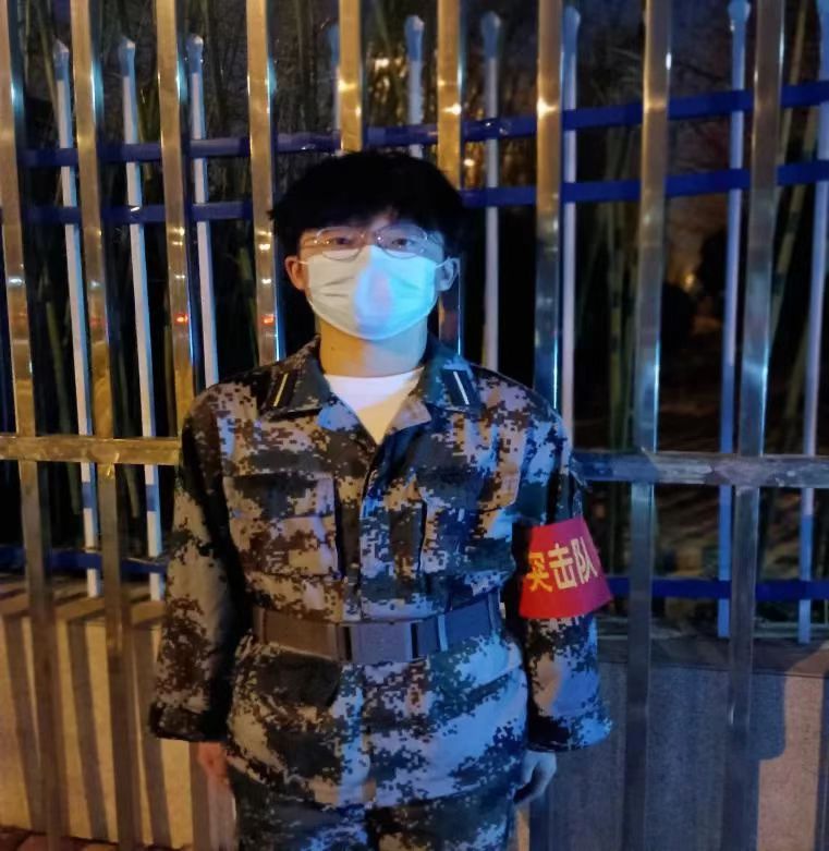 现担任青年突击队考核组一职,疫情期间,多次在医学院门口值班,积极参与志愿者活动。在迎新工作中,主要负责在新生宿舍楼下,帮助学弟学妹们搬运行李,带领他们到新生报道处报道,找到自己的宿舍。
