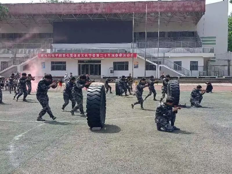 接下来是擒敌拳方阵登场,他们步伐整齐,士气高昂,在每一声铿锵有力的口令下,一拳一腿规范到位。随后,操场上响起阵阵歌声,一首首脍炙人口的红色歌曲接连响起,现场掌声不断,气氛高涨。战术方阵表演过程中,队员们进行着翻滚前进、卧倒在地、匍匐前进等一系列军事技能动作,一招一式干净利落。最后,由杨磊宣读各系获得的名次,康玉强总结发言,希望同学们把春训中学到的坚强毅力投入到今后的学习生活中。此次春训活动,展现了青年突击队员们吃苦耐劳、永不言弃的精神,不仅让队员们练就了坚强的意志力,也培养了他们团结互助的品德。