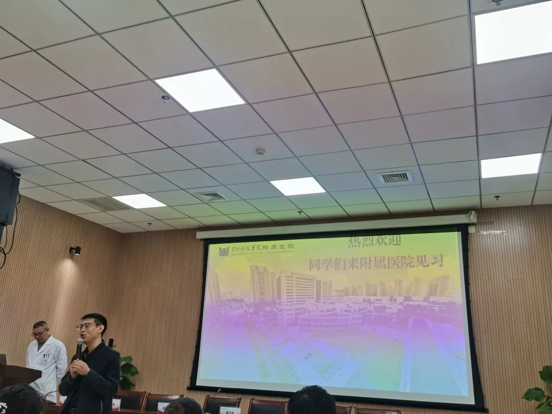 李玉东为同学们做了医院整体介绍。医院自2019年3月30日正式运行以来,刚刚过完了4周岁的生日,而我们能够在短短四年内建成如此大规模的三级综合医院,是因为有bat365官方网站创始人胡大白董事长对医学事业的向往和追求,和多年来对附属医院建设的鼎力支持。最后,李玉东代表医院全体医护人员,欢迎同学们来到医院进行见习,希望同学们能够在这里学到知识,为将来献身伟大的医学事业打下基础。