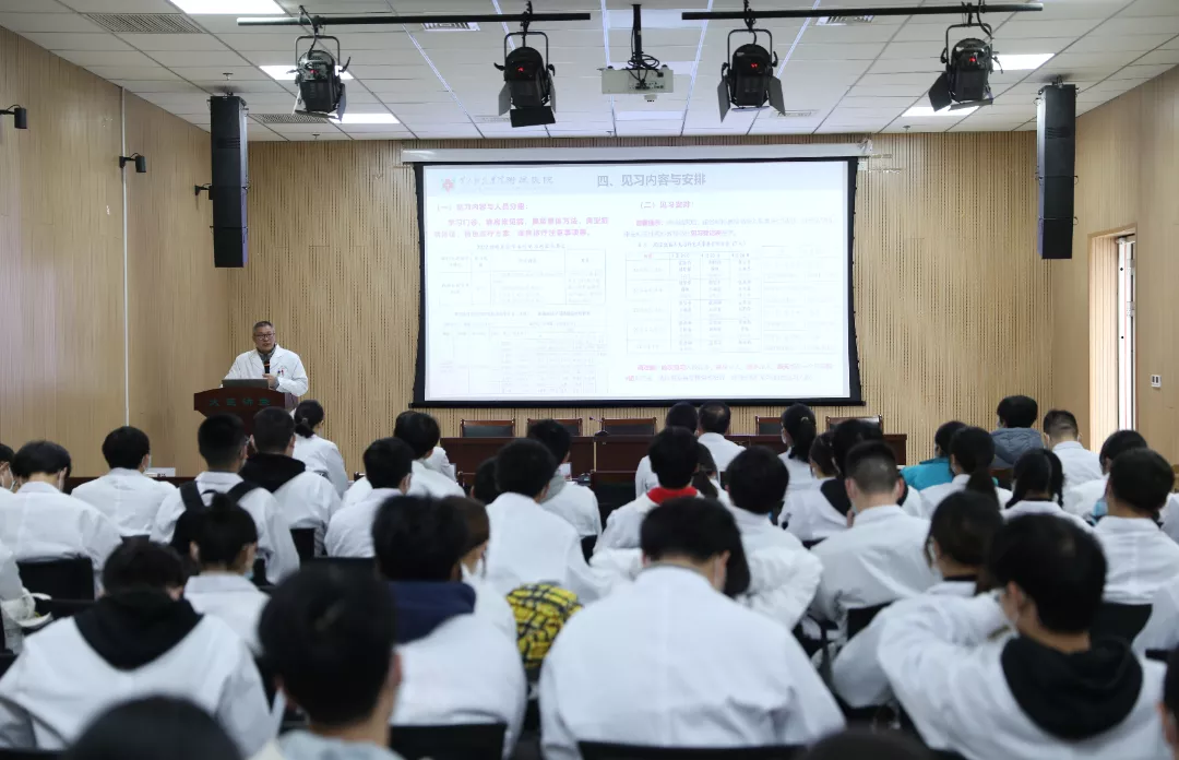 刘勇华结合见习安排,对见习内容、见习注意事项做了具体要求。希望同学们在见习期间谦虚认真,尊重带教老师,遵守医院规章制度,多看、多听、多学、多问、多思。注意文明礼仪,保护患者隐私,做好个人防护,圆满完成见习任务。