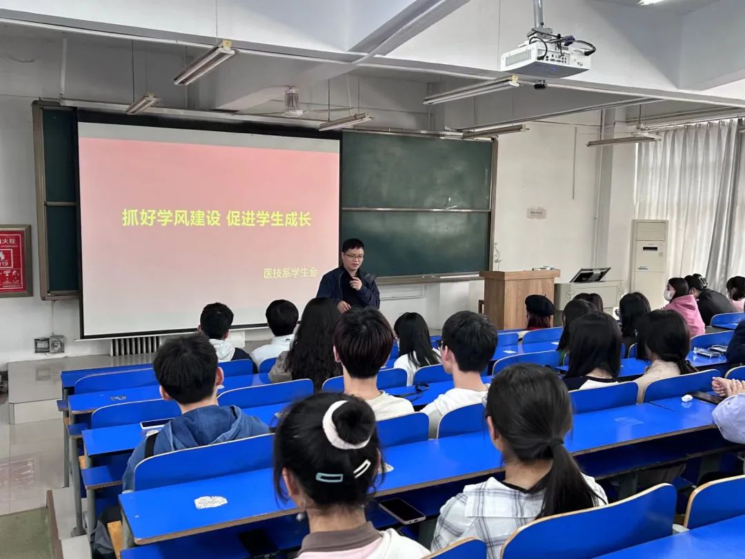 为抓好学风建设常态化,促进学生成长,形成团结上进的优良学风,4月26日,医学技术系在副主任田恒运的组织下于医阶五教室召开学生干部例会。
