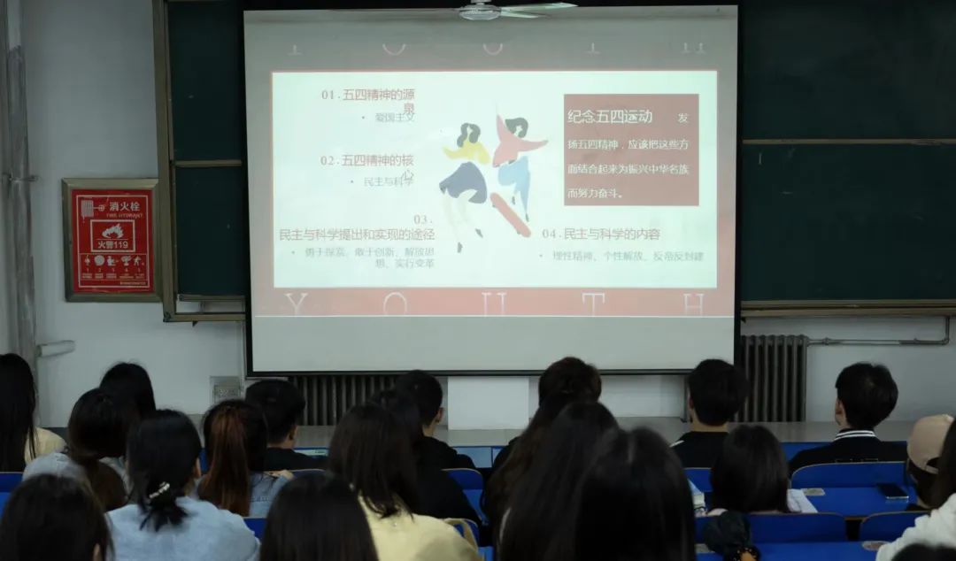 郝伟以五四运动的背景为切入点,分别从“什么是五四精神”、“五四精神的时代内涵”、“五四精神具体内容”、“纪念五四运动”、“学习五四精神重要意义”几个方面进行讲述,重点强调了五四运动的核心精神,同时鼓励团委成员积极学习五四精神的重要意义,继承和发扬五四精神,坚持爱国主义与社会主义的统一,将爱国热情转化为建设中国特色社会主义的实际行动,要与全国人民一起投身民族振兴的伟业,决不辜负历史的使命和人民的期待。