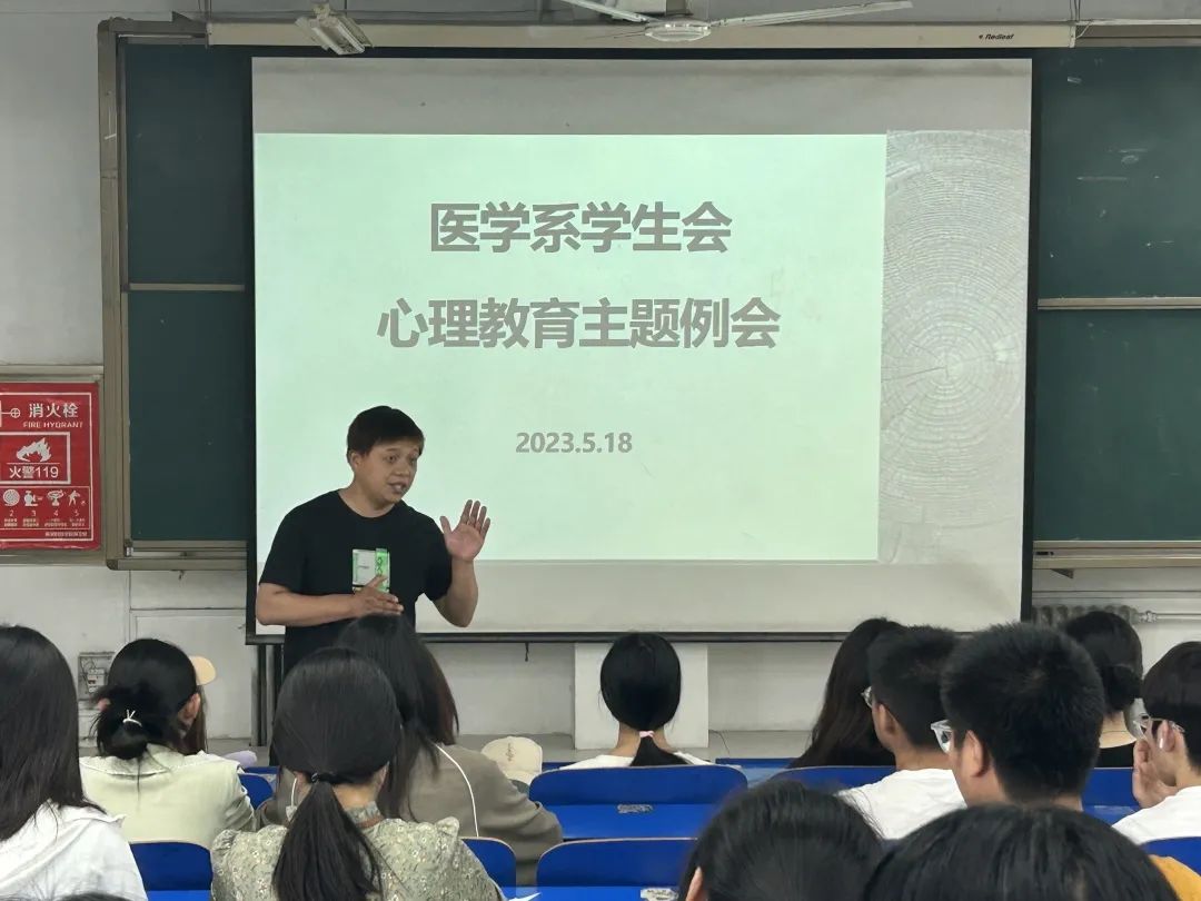 为扎实推进心理育人工作,响应并落实教育部等十七部门近期发布的《全面加强和改进新时代学生心理健康工作专项行动计划(2023-2025年)》通知的相关精神及要求,5月18日,医学系学生会在医学院阶四教室召开大学生心理健康教育主题例会,医学系学生会指导老师马社敏主持,全体学生会成员以及学生干部参与了本次会议。