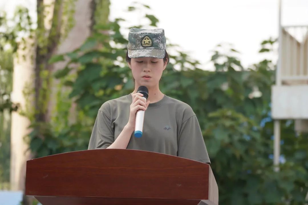 议程第三项,军训教官、新生代表分别发言。三连二排李沁璇代表全体教官发言,她表示承担本次军训任务,使命光荣、责任重大,全体教官一定会以良好的军人形象、过硬的军事本领,以身作则、精心示教,科学施训、灵活组训,高质量圆满完成各项军训工作。一连二排郭宇轩代表新生发言,她表示将用顽强的意志,敢于吃苦、勇于拼搏的精神,秉承黄科大逢一必争、逢金必夺的精神,圆满完成军训任务,并在今后学习生活中,坚定理想与信念,珍惜学习的机会,增长学识和才干,新时代的高素质大学生。