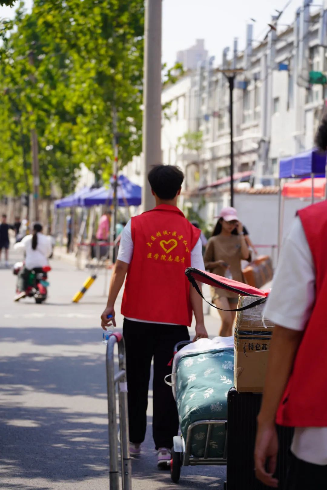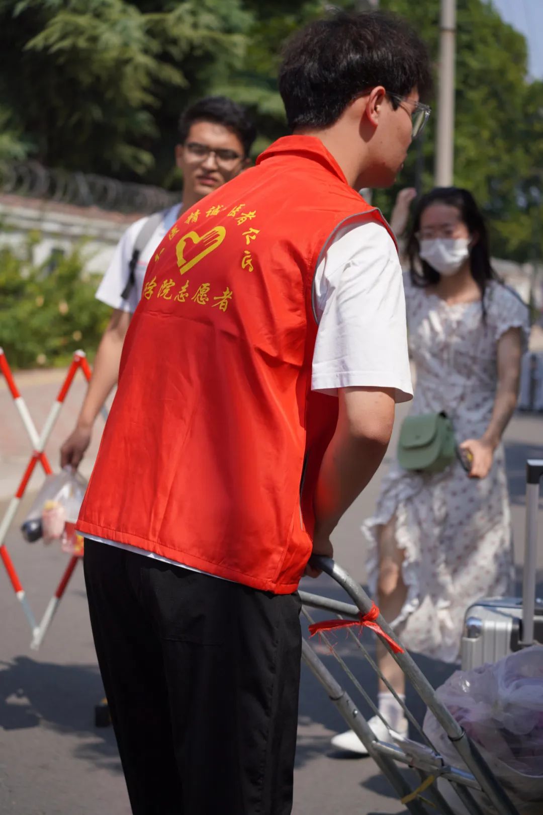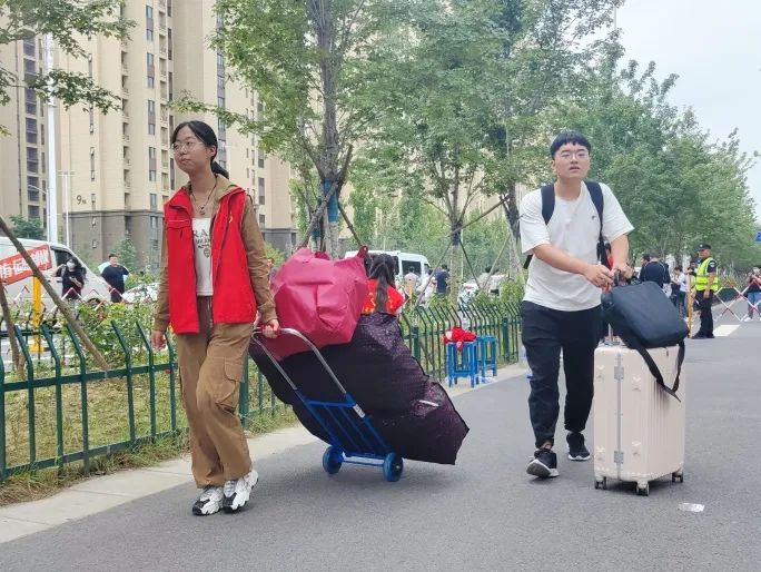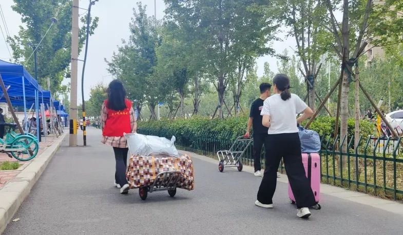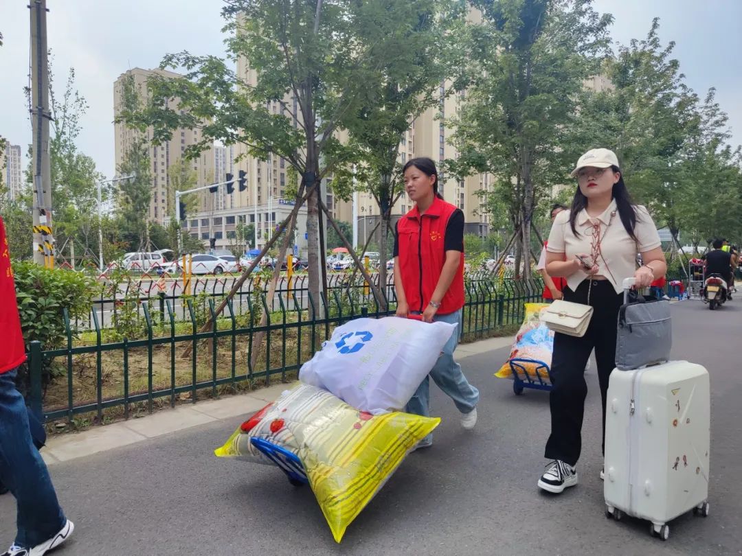 迎新工作者宿管楼下“热情帮助”