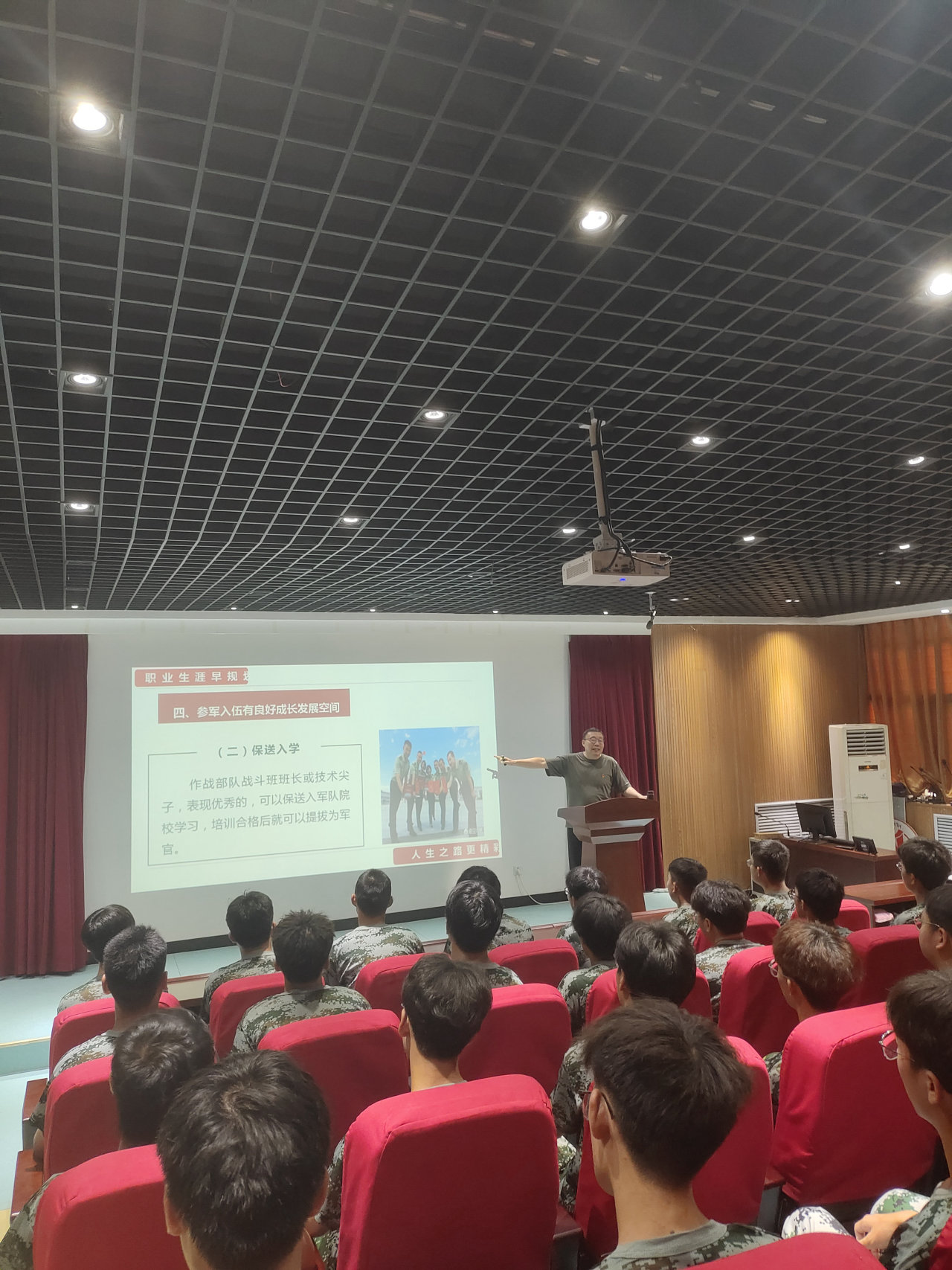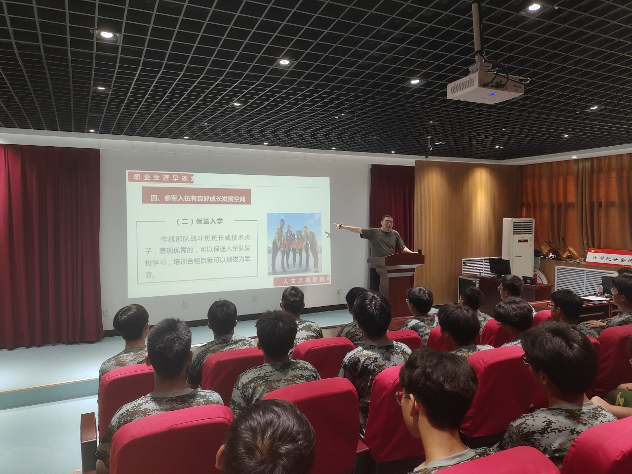 党的十八大以来,习近平总书记多次对加强和改进兵役工作作出重要指示批示,为新时代征兵工作高质量发展指明了方向,提供了根本遵循。此次解读会为学生点明了一个全新的职业规划道路,帮助了有意向参军的同学更充分地了解其相关政策,进一步加强了学生国防意识,提高了学生参军报国的积极性。