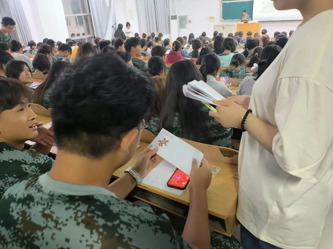 首先,由23级新生代表向同学们演绎手语《感恩的心》,用手势舞的形式表达出对父母、对老师、对亲人以及对朋友的感谢,接着丁敏带领同学们观看感恩视频并通过诗朗诵、分享感恩故事、辩论赛、手工制作等内容,向同学们传递孝母、敬母的美好风尚,同时丁敏予以拓展,引导同学们将这种感恩延伸到感恩教师、感恩国家,让学生对践行感恩有了更深刻的认识。最后,丁敏组织同学们向自己的亲人写一封感恩信,用最朴实无华的话语和最纯真的感情向亲人表达感恩之情。