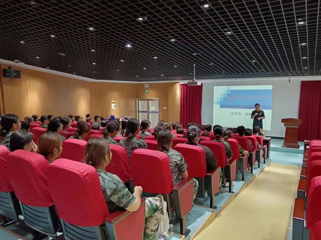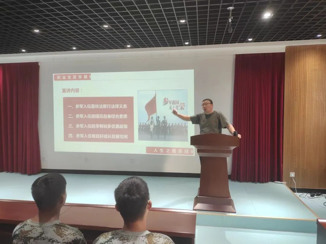 为进一步加强学生国防意识,提高学生参军报国的积极性,邀请马克思主义学院党委副书记韩树栋为新生做主题为《职业生涯早规划,人生之路更精彩》的大学生参军入伍政策解读会;开展了“军歌唱响军营”、“以史为鉴、面向未来”和“纪念抗日战争胜利征文”等纪念活动;组织观看了《百团大战》等电影和视频;通过学院微信公众号推出了军事理论教育专题。