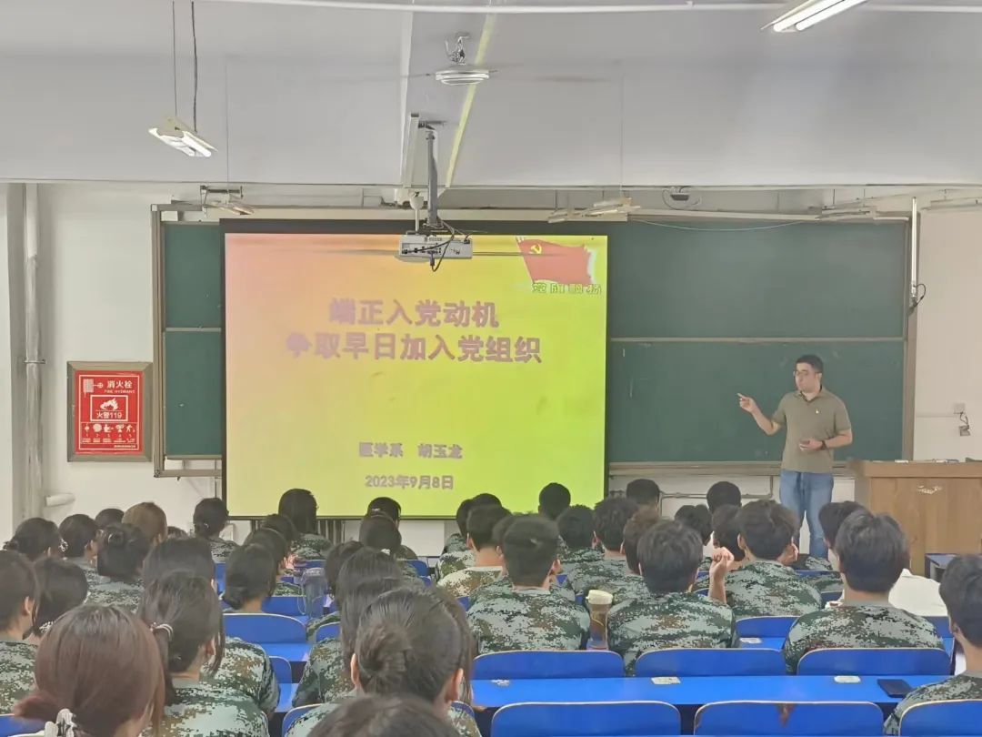 为了激发学生向党组织靠拢的热情,各学生党支部书记给学生上了第一次党课;组织新生观看了纪录片《苦难辉煌》,《建党伟业》等,使大家感受到了我党从苦难走向辉煌的历程,最终全体新生纷纷表达了要早日加入党组织的决心。