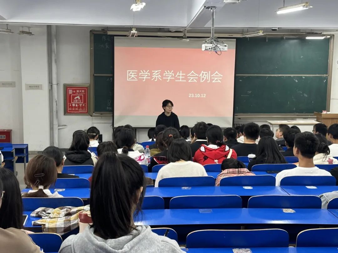 为引导23级医学系学生会新成员尽快了解工作重点和方向,提高学生会总体工作能力和服务水平,10 月 12 日,医学系学生会及学生干部在医学院医阶四教室召开第一次例会,学生会副主席张雅琴主持会议,医学系辅导员郑珂馨到会指导工作。