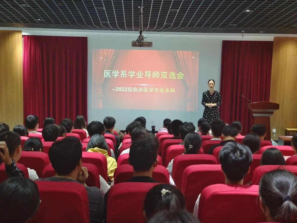 为充分发挥教师在学生专业学习、创新实践、职业生涯规划、升学和就业等方面的教育引导作用,为学生成长成才提供个性化帮助,10月26日,医学院在报告厅举行临床医学本科专业学生学业导师双选会。医学系主任郭晓娜,主任助理马社敏、张楠,辅导员郑珂馨,学业导师尚曙玉、牛美兰等相关人员出席会议,2022级临床医学本科专业学生参会。