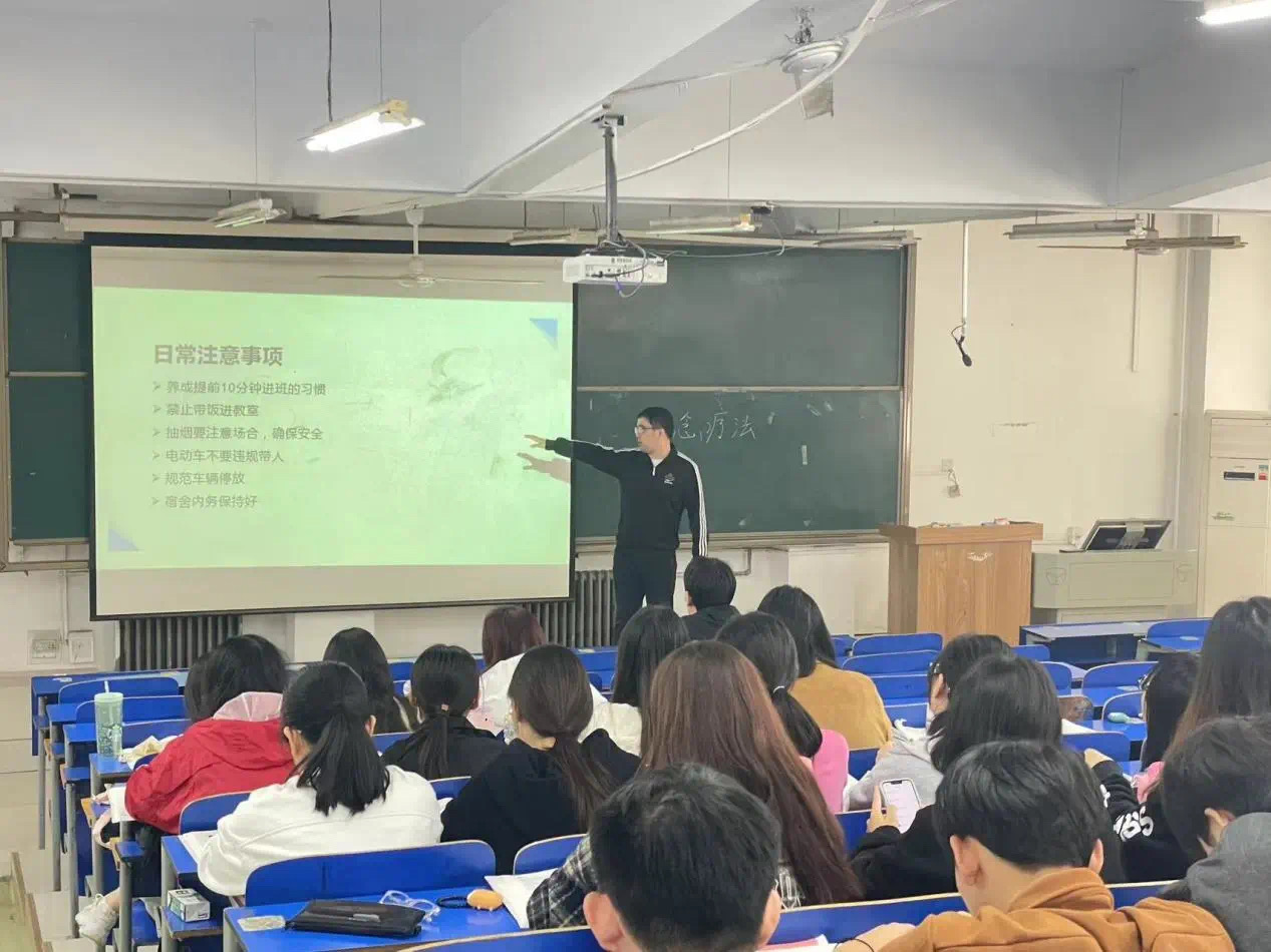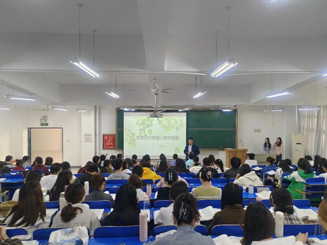 会上,李保栓从严格遵守校规校纪,行车文明,宿舍文明,语言文明等方面进行讲解,引导学生树立文明安全意识,提高大学生的综合素质和文明习惯,确保每一位学生都能在安全的环境中茁壮成长。