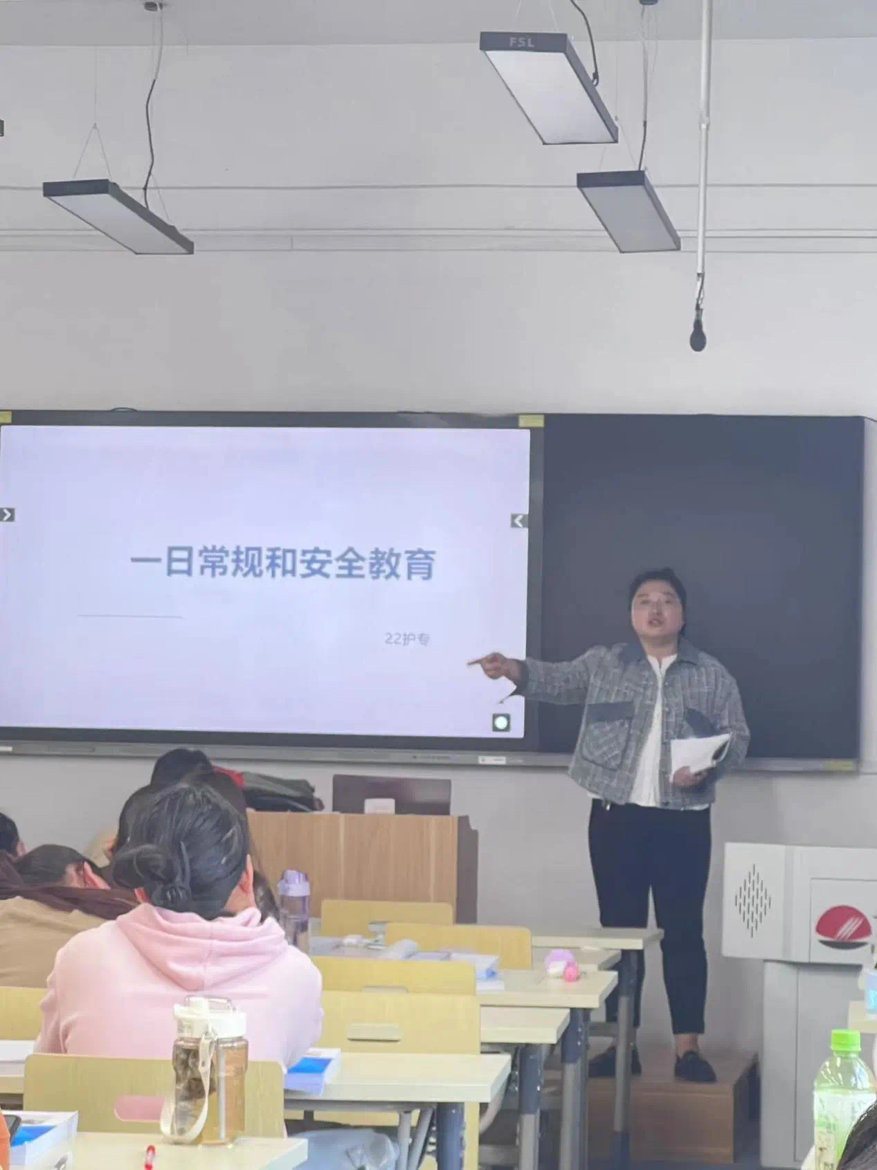 会上,辅导员赵岩岩强调了大学生日常行为规范和安全防范意识的重要性。她强调,第一是加强日常行为规范,杜绝上课带饭、穿拖鞋上课等不文明现象,纪律委员和生活委员要做到严格监管;第二是增强安全意识,包括骑车载人、网络诈骗和宿舍安全用电等,每日在班级群内分享诈骗案例希望认真学习,提高防范意识,班级内要做好用电安全和宿舍内务自查工作;第三是教学楼门口停车问题,应在划定区域规范停车。