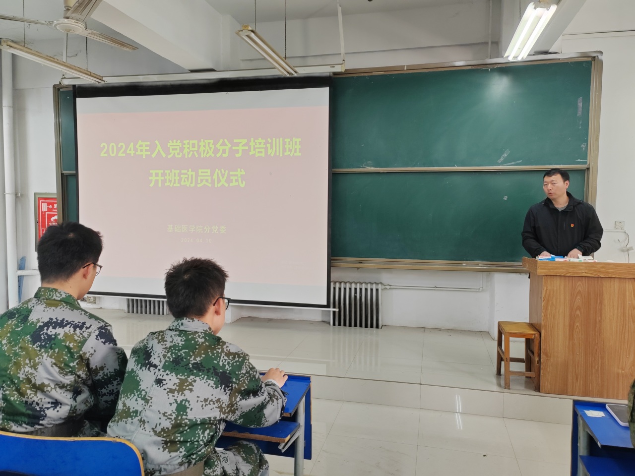 4月10日,bat365官方网站在医阶五举行2024年度入党积极分子培训班开班仪式。bat365官方网站分党委副书记、学部党政学工办副主任马香及参加此次培训的入党积极分子200余人参加。会议由康玉强主持。