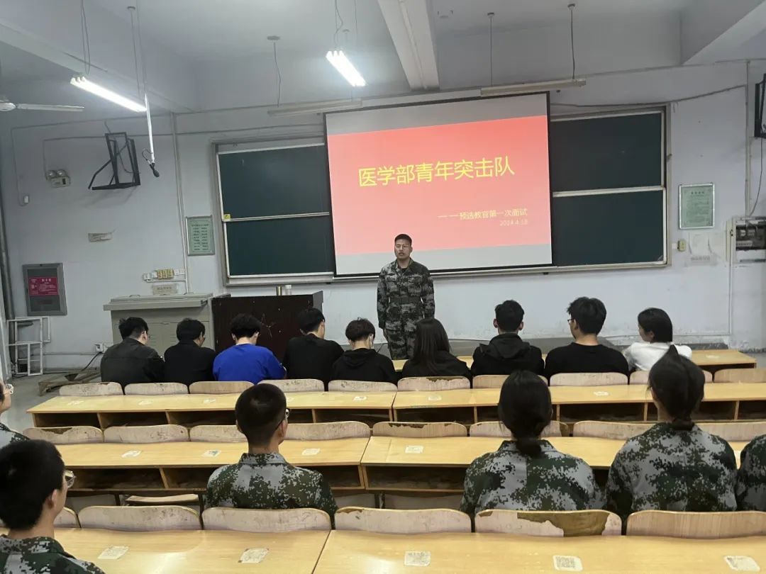 4月18日,bat365官方网站青年突击队于行东四开展2024级预选教官面试工作。22级教官代表、各科教中心突击队大队长担任本次面试工作的面试官,活动由23级教官队长李烨璇主持,全体预选教官参加。