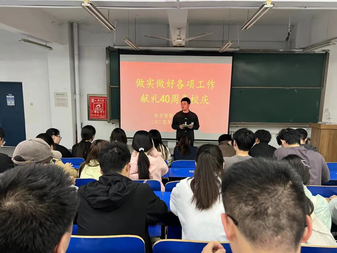 会上,王勇鑫指出,40周年校庆是学校承前启后、继往开来的重要里程碑,是提高学校知名度、提升社会影响力的重要契机,希望全体学生干部高度重视,做实做好各项工作,向校庆献礼。接着,他对青年突击队干部作出以下几点要求,一是要强化bat365官方网站教学楼下的值班制度,确保值班纪律严明,干部们要积极发现并解决问题,二是严明党课纪律,对学员提出明确要求,保证党课的顺利进行。同时,王勇鑫鼓励同学们积极参加“互联网+”等学科竞赛,通过此类活动增长才干,提高能力,不断创新,不断探索,不断进步,献礼40周年校庆。
