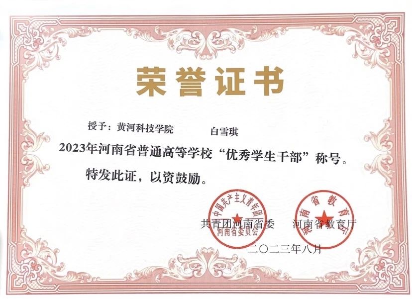 河南省优秀学生干部