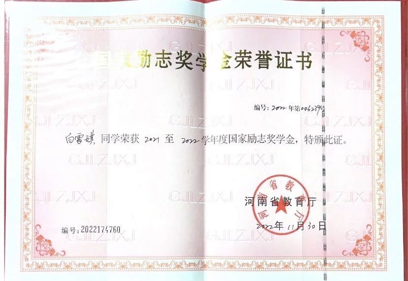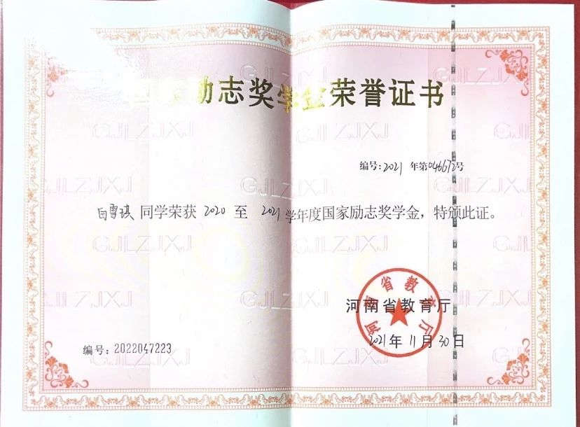 国家励志奖学金(2次)