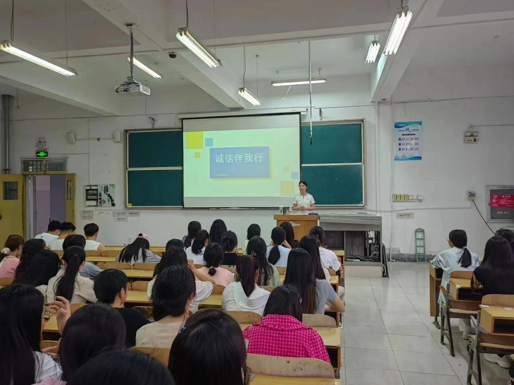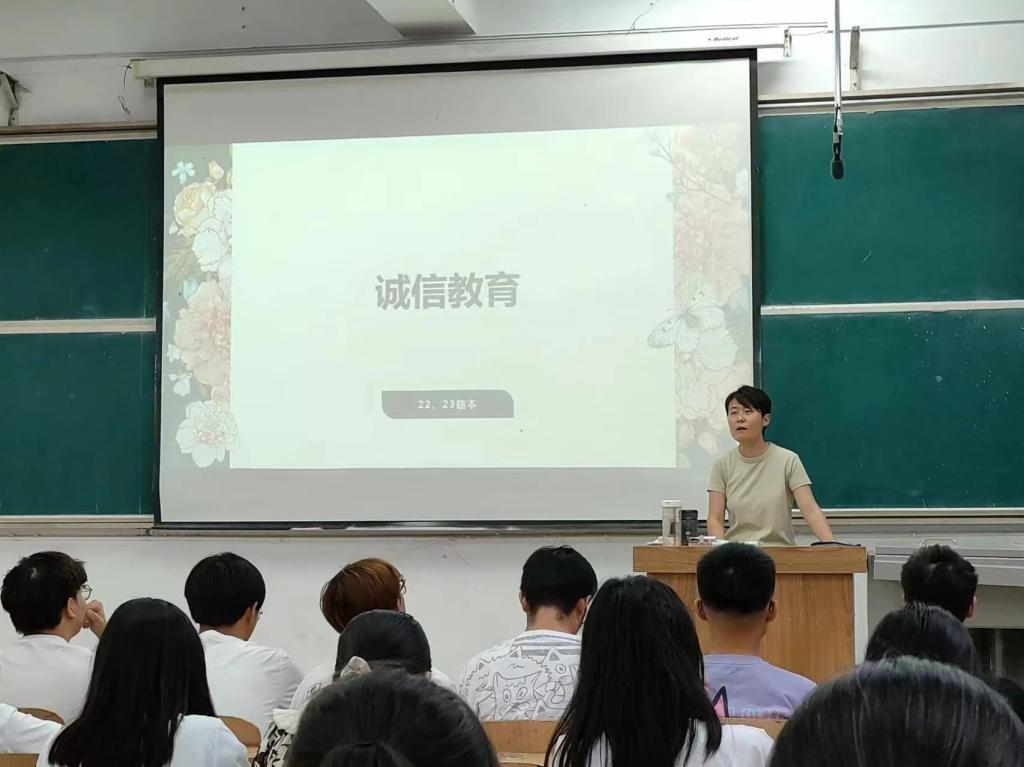 为增强同学们的诚信理念,端正对学习和考试的态度,营造优良的考试风气,近期,bat365官方网站各班开展诚信考试教育主题班会,各班辅导员主持。会上,各班辅导员从保持诚信的重要性、考试纪律的相关规定和鼓励同学们积极备考三个方面展开论述。首先,辅导员们强调诚信是中华民族的传统美德,是社会主义核心价值观的重要内容,引导同学们树立正确的考试态度、培养坚定的诚信意识。接着,通过讲述考试纪律的相关规定,包括禁止携带手机等电子设备进入考场、禁止抄袭他人试卷、禁止替考等,让同学们深刻认识到诚信考试是每一个学生都应该坚守的原则。最后,各位辅导员们鼓励同学们积极备战期末及即将到来的四级考试,严格要求自己,制定合理的复习计划,在考试中发挥出自己的真实水平。
