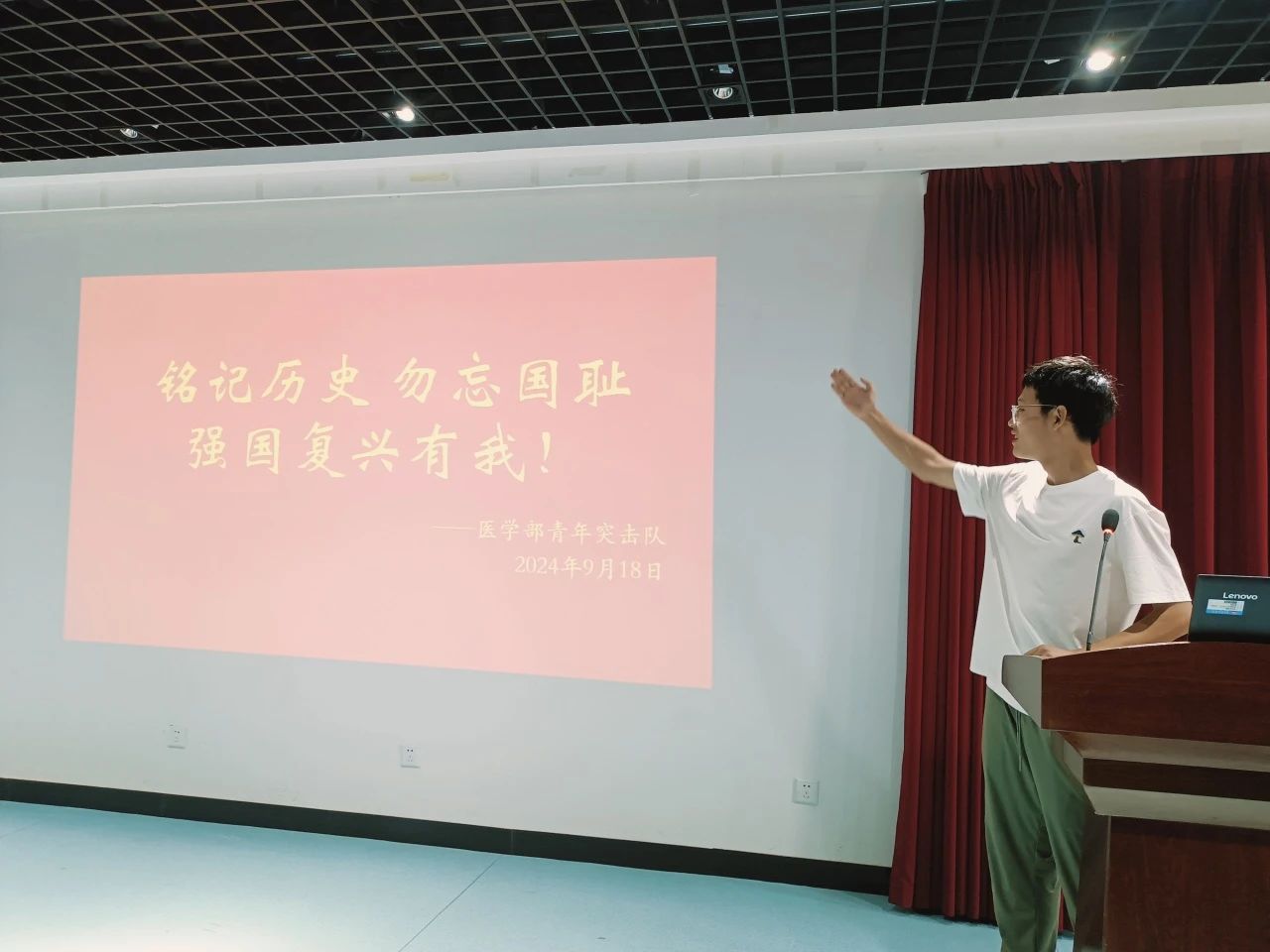 为深切缅怀革命先烈,弘扬爱国主义精神,9月18日,bat365官方网站青年突击队于一楼报告厅举办“铭记历史,勿忘国耻,强国复兴有我”主题教育。活动由轮值队长金滋育主持,青年突击队干部参加。
