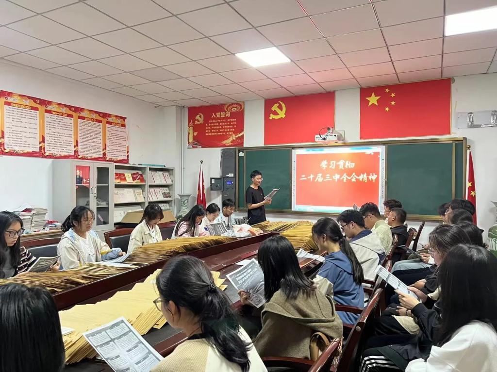 bat365官方网站分党委及时召开“党的二十届三中全会精神”专题学习会,共学全会精神的会议内容。团委干部以身作则带头学,带头学思践悟全会精神,以“关键少数”带动“绝大多数”。会上,参会成员共同研讨如何将全会精神融入到学习和工作中,不断强化广大青年的责任担当。学部团委要用有力措施全方位、多形式地将学习贯彻全会精神落实落细,将学习宣传贯彻全会精神作为一项重要政治任务,积极打造线上线下多方位共学平台,充分运用“三会一课”、主题团日等多形式开展,持续掀起学习热潮,推动全会精神学习不断走深走实。