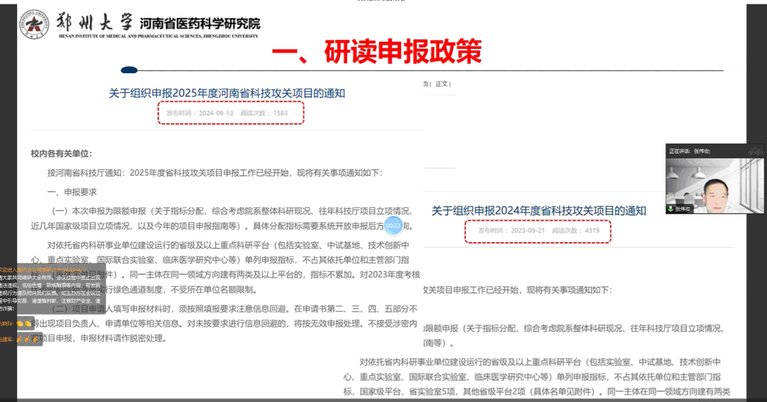 为进一步提升bat365官方网站教师教学科研能力,推进医教研协同创新发展,助力bat365官方网站高质量发展。9月22日,bat365官方网站提升教师科研能力系列培训第3讲如期举行,特邀郑州大学河南省医药科学研究院院长张伟宏教授做线上科研讲座,bat365官方网站教师及附属医院骨干150余人参会。学校党委医学工作部部长李喜强主持会议。