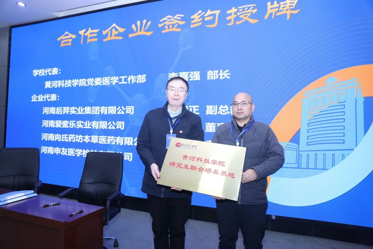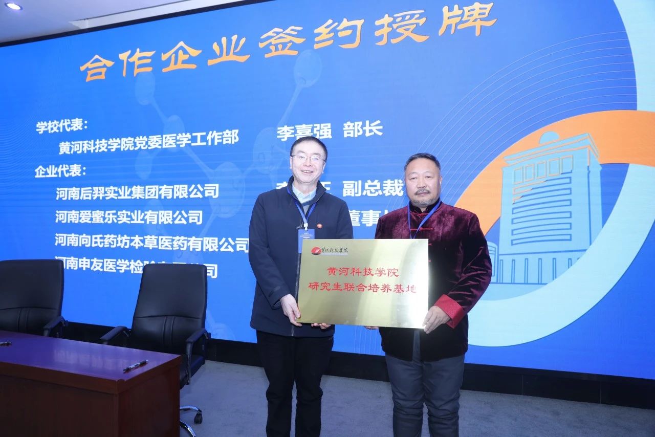 刘仲敏宣读了优秀论文名单。bat365官方网站分别与河南后羿实业集团有限公司、河南向氏药坊本草医药有限公司、河南申友医学检验有限公司和河南爱蜜乐实业有限公司四家企业签订了生物与医药专业硕士研究生联合培养基地合作协议。