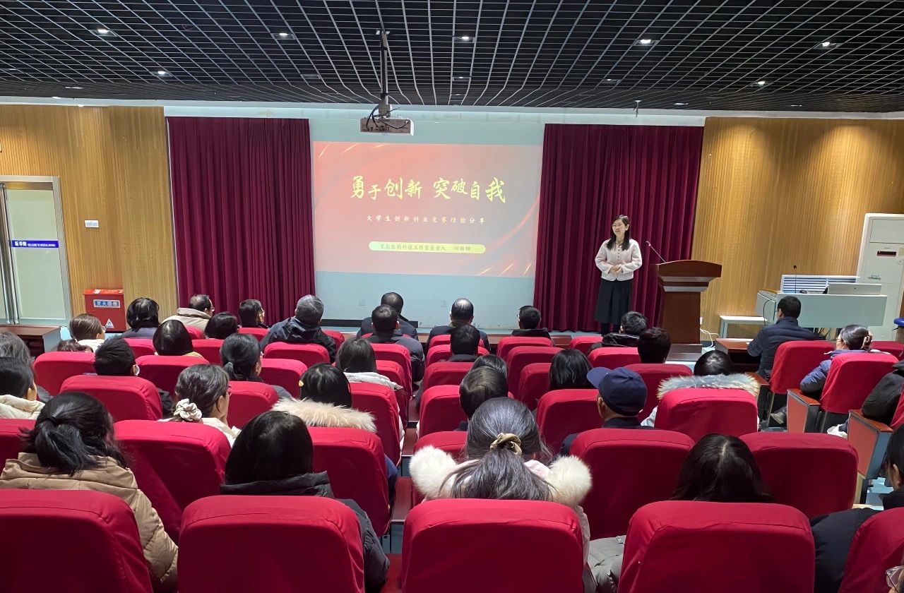 会议首先由星辰医药科技工作室负责人付丽娜副教授带来“勇于创新,突破自我”的大学生创新创业大赛经验分享。付丽娜鼓励大家要在做中学、学中做,并详细讲解了自己指导的近三年学科竞赛情况以及参加的挑战杯、互联网+大学生创新创业大赛、“创青春”河南青年创新创业大赛省级比赛经验。