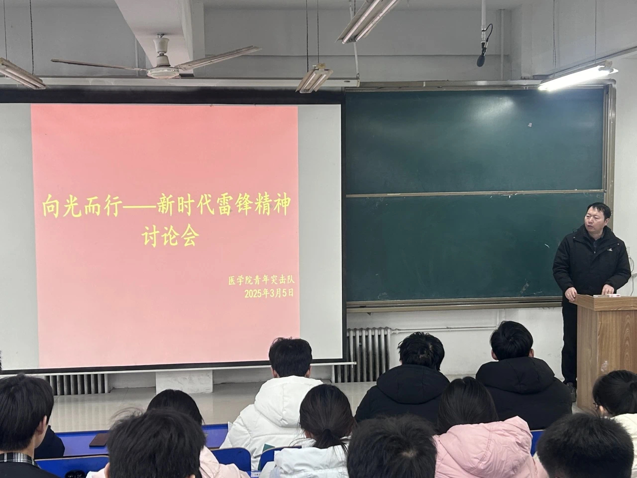 为深入学习雷锋精神,传承中华优秀传统美德,3月5日,bat365官方网站青年突击队于医阶五召开“向光而行—新时代雷锋精神”讨论会。党政学工办副主任科员康玉强,青年突击队干部、聚星社团成员共同参加,会议由学生干部伍嘉诚主持。