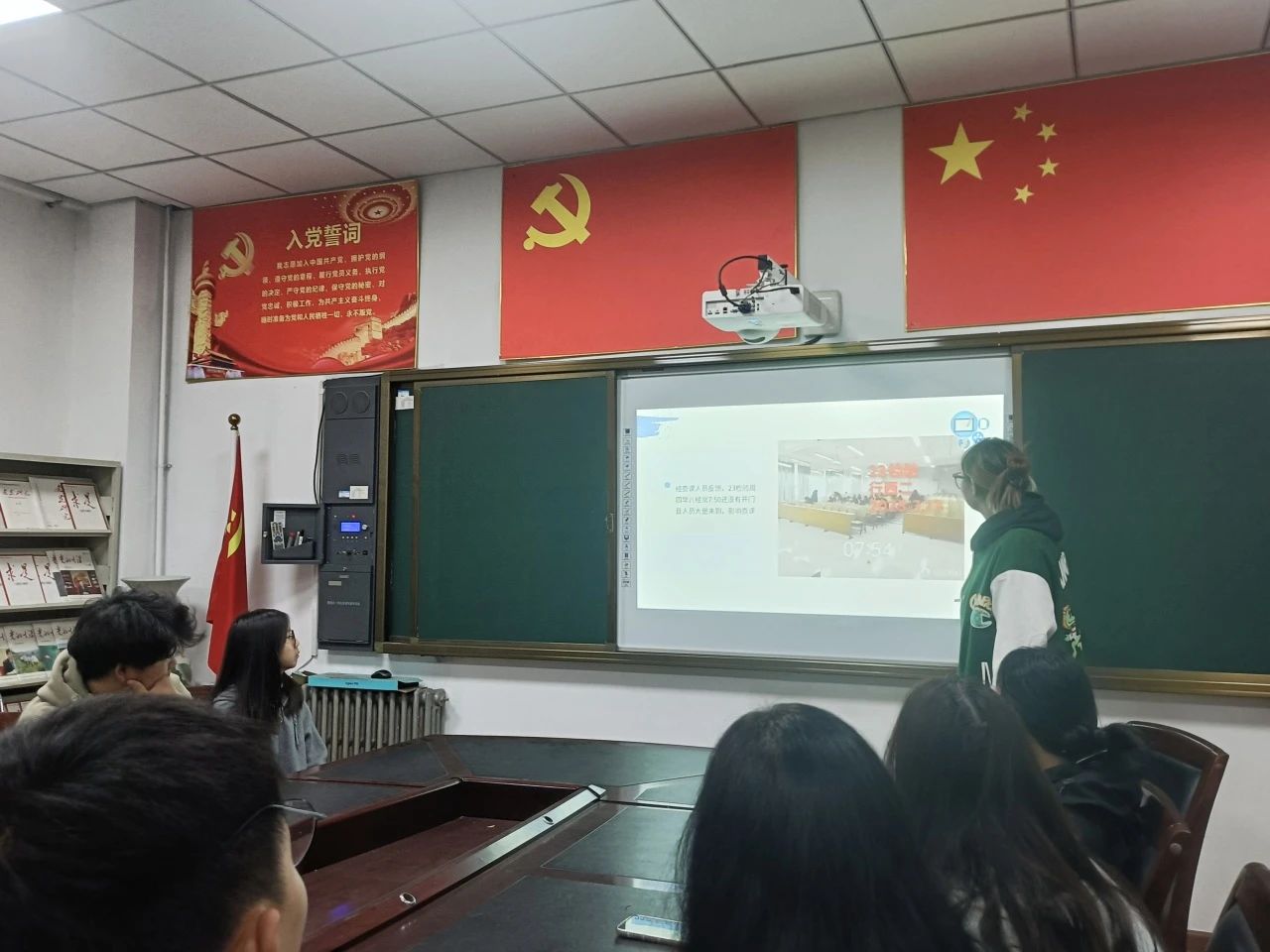 会上,袁梦雅就本学期上课出勤纪检工作进行总结,向四科教中心学生会主席通报了近期各班级的出勤结果,并对出勤检查、请假制度、日报汇总等方面进行强调。