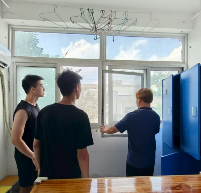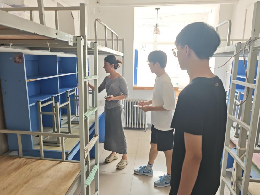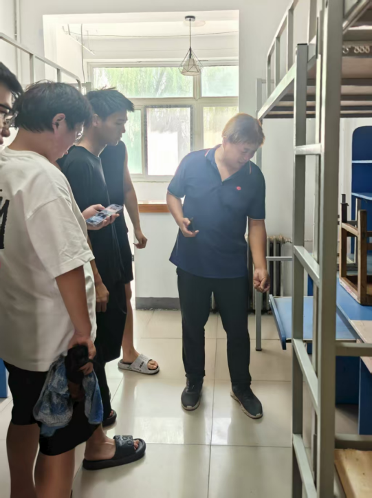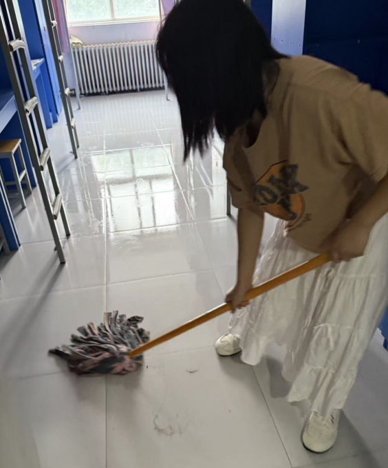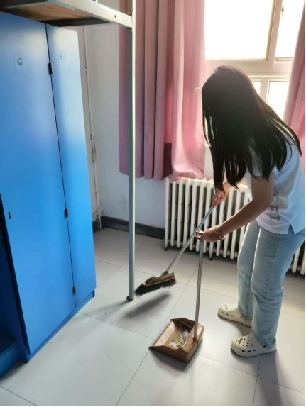 活动前期,学生干部团队周密部署,按区域和任务重点分组协作。宿舍区域,各组按楼栋、房间号分工,对照卫生清扫清单明确重点,清理地面垃圾灰尘、墙角蛛网,细致擦拭书桌、衣柜、门窗等,以确保环境卫生达标。同时,教室区域学生干部们认真打扫地面、擦拭桌椅、清洁黑板讲台,为新生打造良好的学习环境。清扫结束后,各科教中心辅导员及部分学生干部立即前往老14号楼、老11号楼等新生住宿区域及相关教室,逐间进行细致检查与现场指导,对发现的设施问题、卫生盲区逐一记录,明确整改方向,为后续清扫工作划定重点。