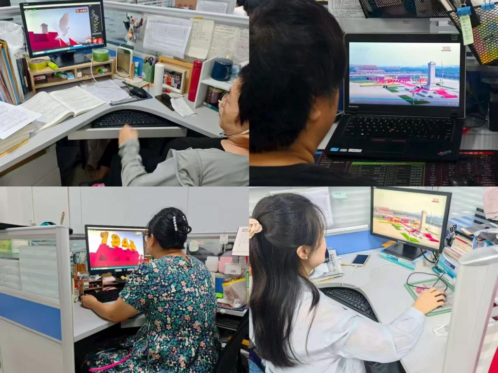 阅兵仪式开始,师生全体起立,齐声高唱国歌,庄严注视五星红旗在天安门广场冉冉升起。在观看过程中,师生们全神贯注,认真聆听习近平总书记重要讲话,不时记录要点。当各受阅方队以整齐划一的步伐通过天安门广场时,师生们神情庄重,目光中流露出由衷的敬意。
