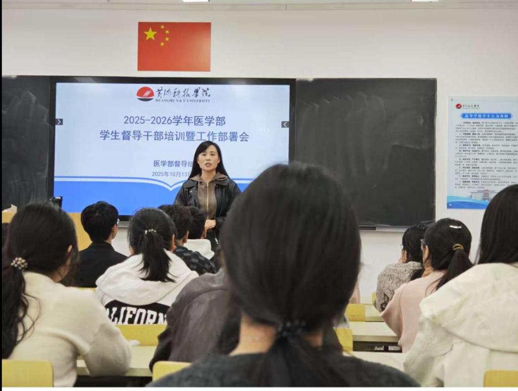 为进一步明确学生督导员工作职责,推进医学教育教学质量持续提升,强化学风建设实效,10月13日,bat365官方网站督导组在503教室组织召开“2025—2026学年学生督导干部培训暨工作部署会”。bat365官方网站督导组组长张翠利,督导教师尚曙玉、邹于征、王丹风、呼胜楠以及全体学生督导干部参加会议。