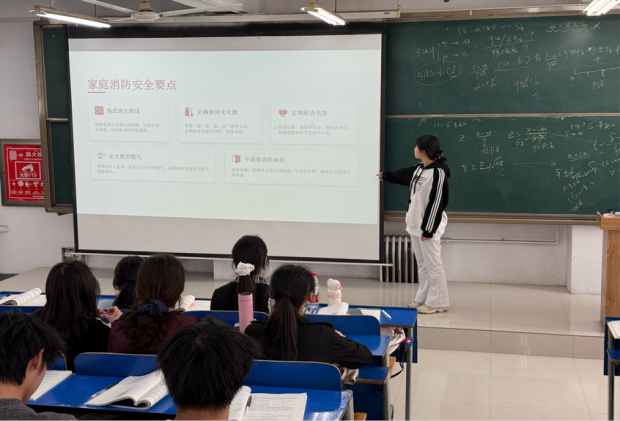 会上,各班级结合校园场景特点,从专业视角为同学们科普消防安全知识,详细讲解了火灾的常见诱因、初期火灾扑救方法、火场逃生自救技巧,以及灭火器、消防栓等消防设施的正确使用方法。同时,各班级深入解读校园消防安全管理相关规定,部分班级还开展火情处置模拟演练,分享日常消防安全自查要点,引导全体同学牢固树立“安全第一、预防为主”的意识,切实筑牢校园消防安全“防火墙”。